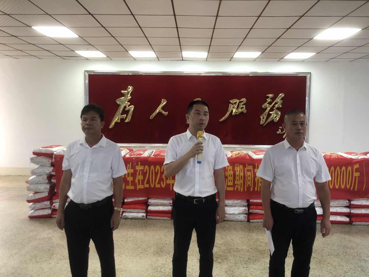 6月30日,我镇组织相关中层干部、乡村振兴工作队、各有船单位、渔民代表在镇政府大厅举行2023年南海伏季休渔期间捐赠大米仪式。