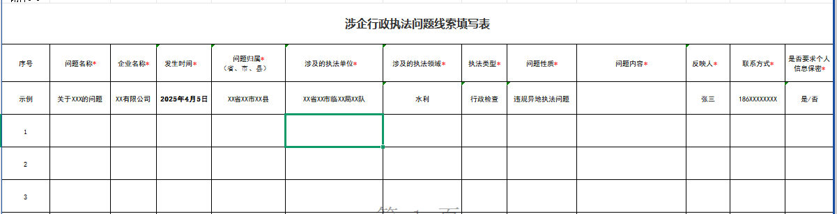 附件:《涉企行政执法问题线索填写表》