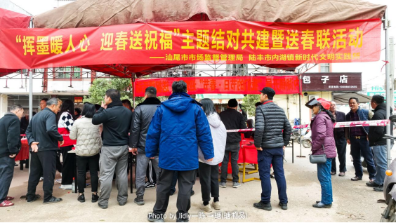 历添新岁月,春满旧山河。为弘扬和传承中华优秀传统文化,丰富群众精神文化生活,营造浓厚的节日氛围,适逢2024甲辰新春来临之际,1月23日上午,汕尾市市场监督管理局、内湖镇新时代文明实践所邀请了一批书法家和书法爱好者在内湖大埕开展“我们的节日·春节”迎新春,送祝福的主题结对共建活动,以“文明实践+文化惠民”推动结对共建工作落地结果,赋能农村精神文明创建五大行动,助力“百千万工程”提质增效。