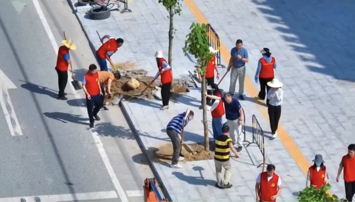 植树现场,大家热情高涨,挥锹铲土、扶植新苗、培实新土,井然有序进行,相互配合默契。通过此次活动,发挥党员干部先锋引领示范作用,增强了群众植树造林和生态环保意识,引导村民群众植绿护绿,共同建设绿色家园。