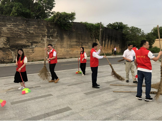 活动现场,党员、志愿者们充分发扬不怕脏、不怕累的志愿精神,手拿垃圾夹、笤帚等清扫工具,分成多个小组,对丽湖古寨及周边环境进行卫生清理。