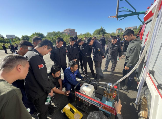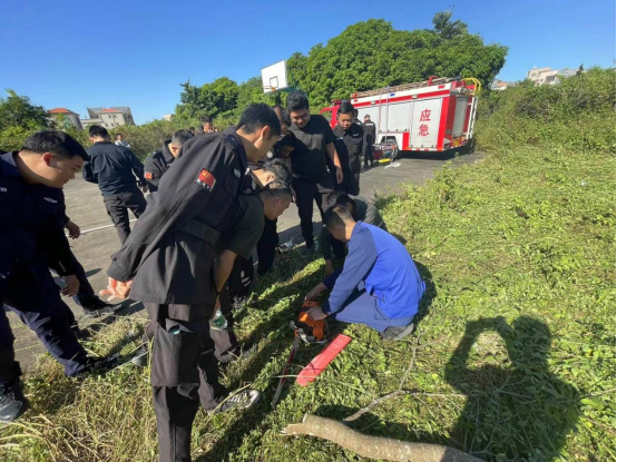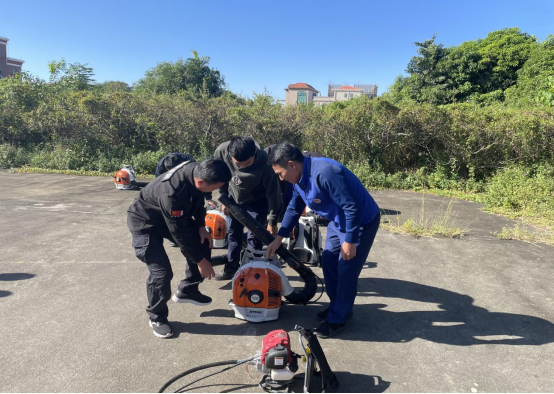 一是由消防员讲解鼓风机、抽水泵的使用和25水管连接、电油锯、割草机等工具的使用方法,并通过一对一指导网格员使用工具,确保网格员做到熟悉的使用工具。