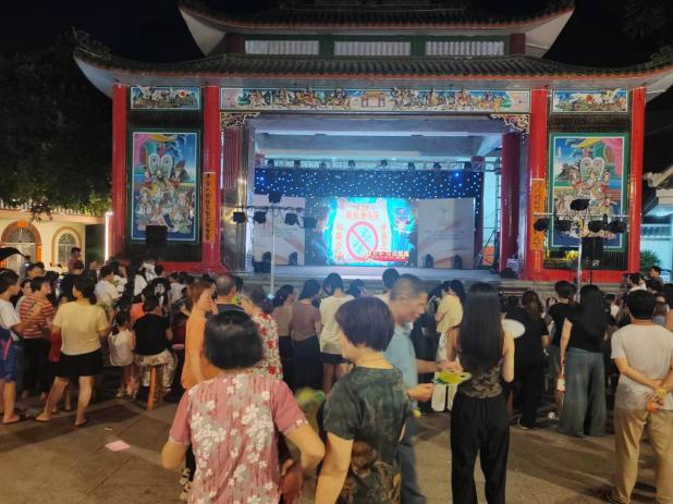 活动紧紧围绕“绿美平安南塘”这一主题,通过充满活力的少儿歌舞、生动有趣的小品等形式,寓教于乐,巧妙地展示了南塘镇在禁毒、铁路安全、反邪反诈、社会治安综合治理等诸多方面所取得的显著成果。精彩的表演吸引了众多居民纷纷驻足观看,现场人头攒动,热闹非凡。
