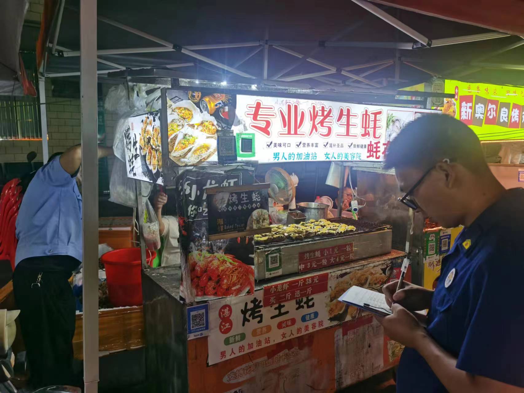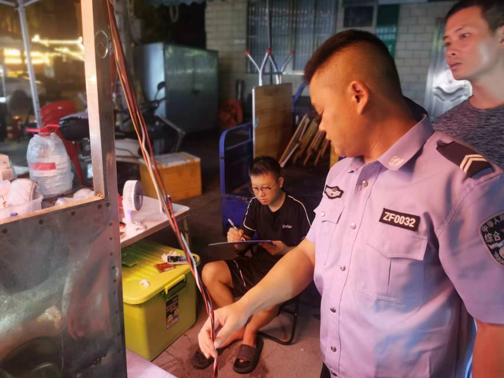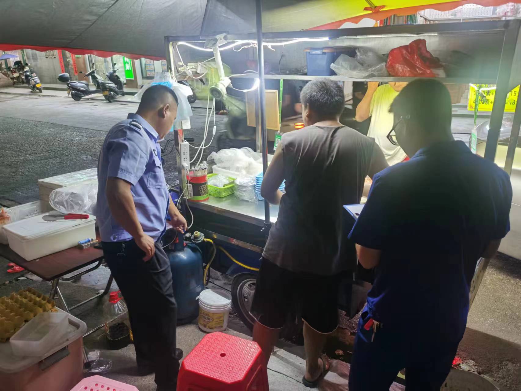 7 月 18 日晚,为推动地摊经济良性发展,守护群众生命财产安全,南塘镇组织镇执法队与消防队联合展开消防夜查及流动摊贩安全隐患排查行动。