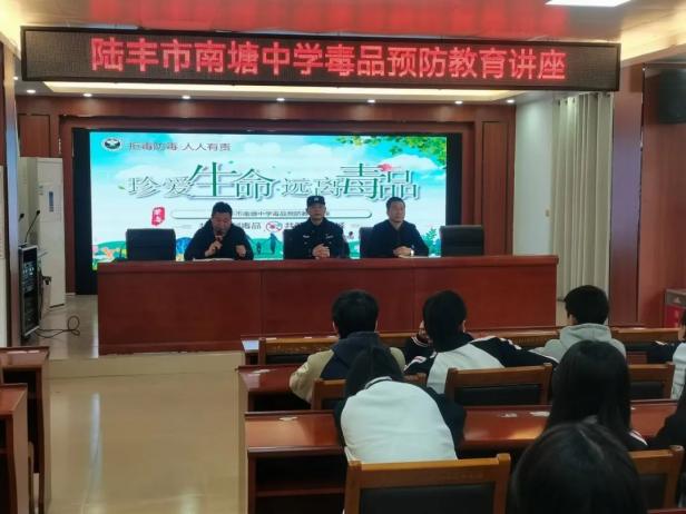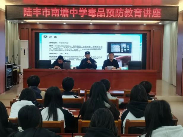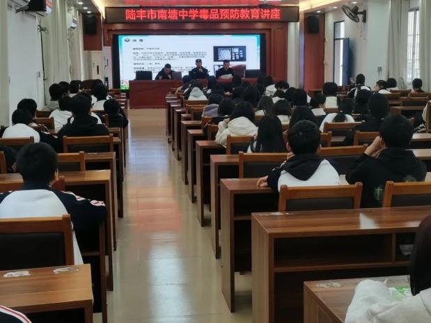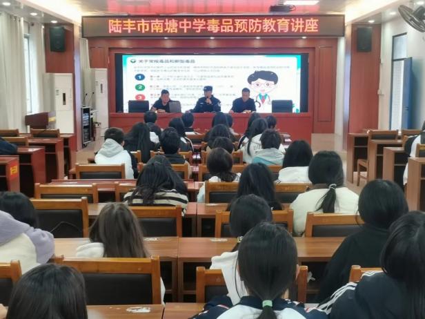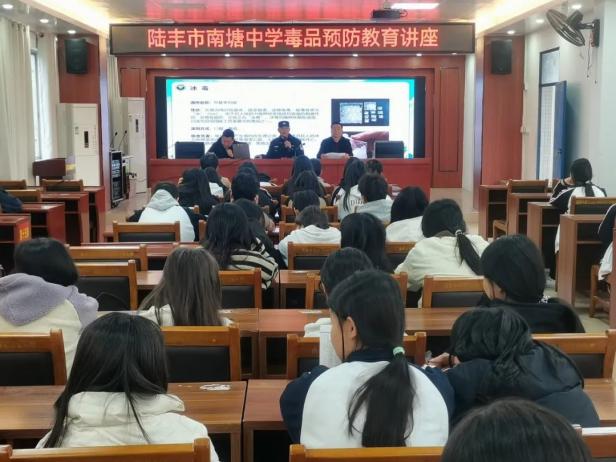 为了进一步增强青少年的禁毒意识和自我保护能力,2024年12月16日,南塘镇组织派出所所长、平安法治办、社区“两委”干部等四十余人在南塘中学开展“携手禁毒,共筑青春防线”的禁毒宣传教育讲座。此次活动旨在普及毒品知识,传授识毒方法,讲明法律后果,全面提升青少年防范“麻精药品”等成瘾性物质滥用的意识和能力。提高青少年禁毒意识,营造健康无毒校园环境。