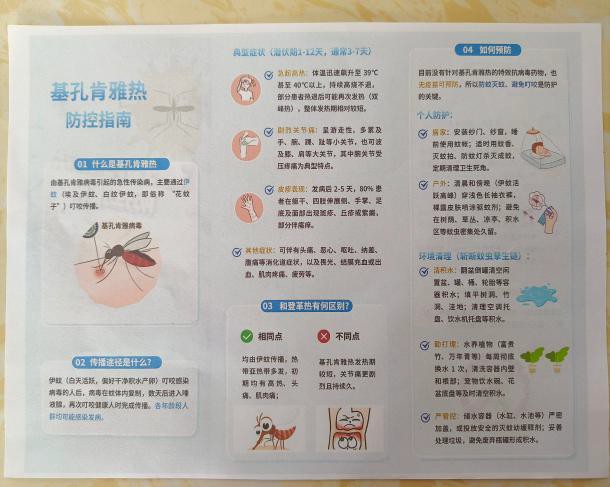 在宣传工作方面:竹坑村以“入户联心”为契机,党员志愿者们深入村居,向村民和商户派发基孔肯雅热防控知识宣传单,详细讲解防蚊灭蚊要点和疾病症状,重点提醒村民及时清除家中积水容器、花盆托盘等蚊虫孳生地,安装纱窗纱门,做好个人防护;同时,充分利用村居户外LED电子屏幕,滚动播放通俗易懂的防控宣传标语,使用广播大喇叭播放相关宣传声带,重点向老年人普及相关知识。
