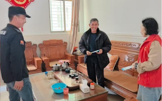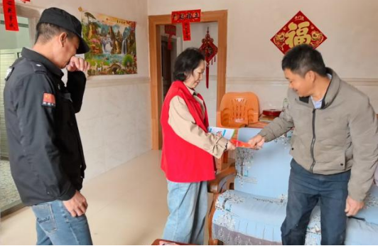 春节过后,大量外出务工人员离乡,为进一步加大禁毒宣传教育力度,增强辖区群众识毒、防毒、拒毒的意识。2025年2月14日下午,陂洋镇平安法治办联合妇联、三岭村两委干部、网格联防队员及志愿者在陂洋镇三岭村内开展禁毒知识入户宣传活动。