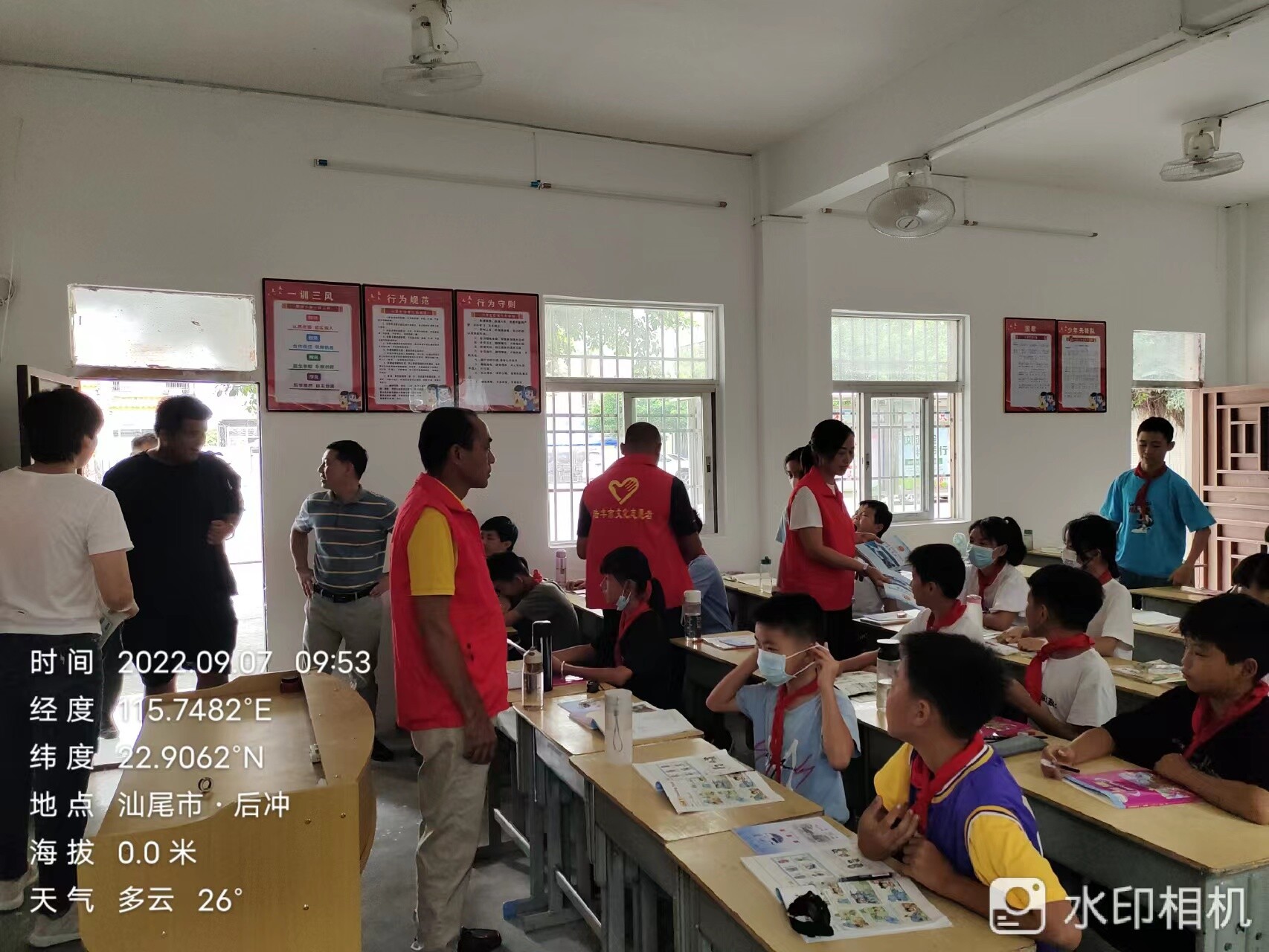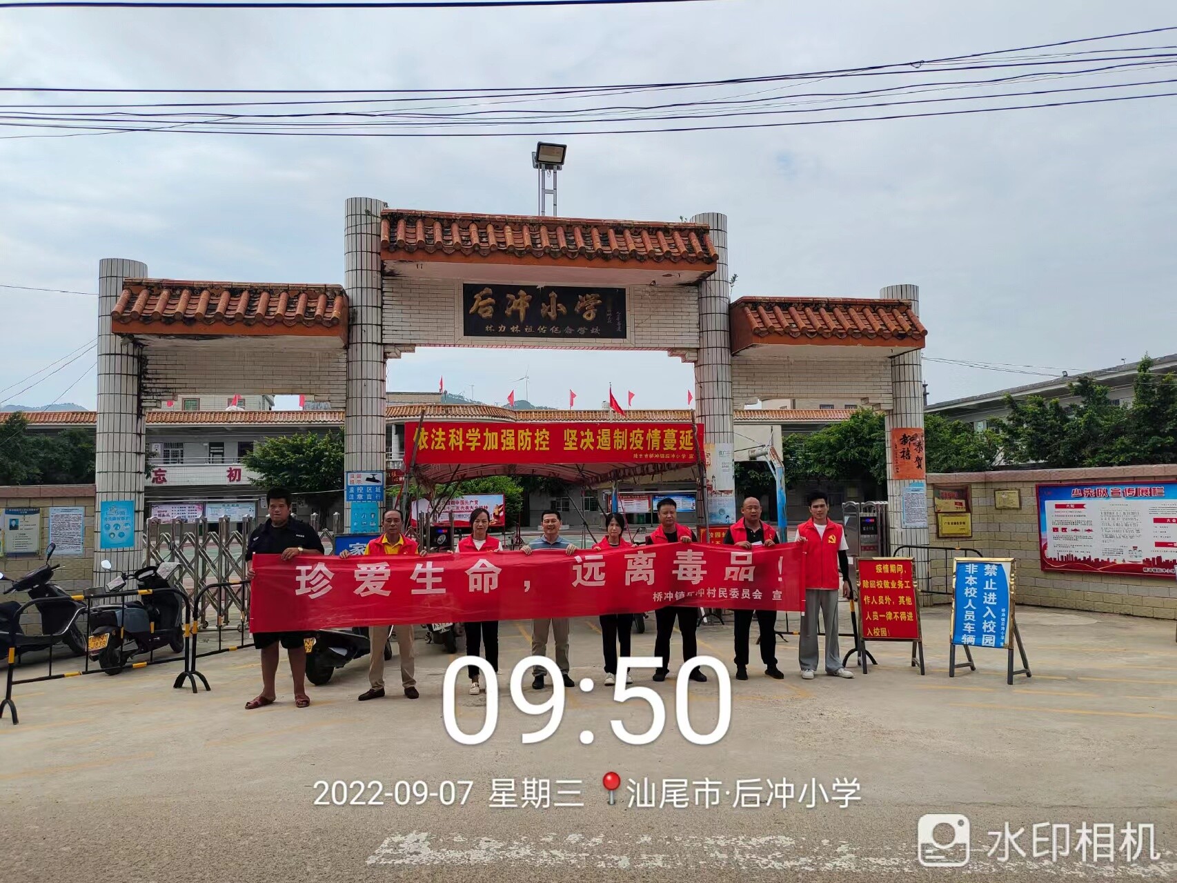 9月7日,在镇党委、政府的安排部署下,我镇禁毒办、团委、妇联及镇志愿者、村两委干部和联防队员利用学校秋季开学时机,到后冲小学开展禁毒宣传活动。为了推动学校宣传教育的开展,进一步提高师生们预防毒品和抵御毒品的能力,保障学生在校园健康成长,扎实推进禁毒教育,强调学生加强养成教育。