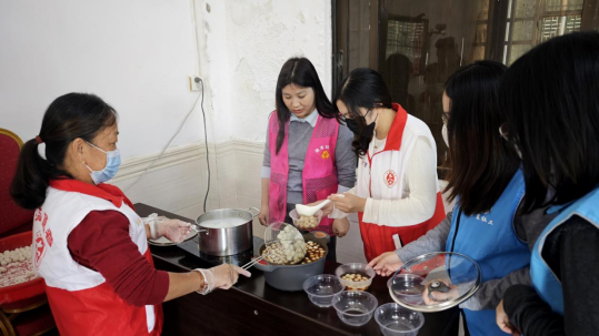 随后,志愿者们带着打包好的菜包粿与汤圆,走访村内孤寡老人、残疾人、低保户家庭,将热乎的食物递到他们手中。接过餐盒的老人连连道谢,现场暖意融融,让这个寒冷的冬至多了几分温馨与烟火气。