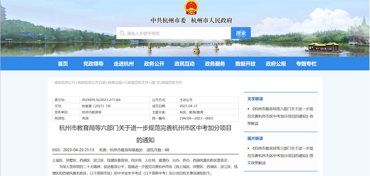 《杭州市教育局等六部门关于进一步规范完善杭州市区中考加分项目的通知》显示,根据有关政策,完善留学回国人员随归子女、港澳学生等中考加分项目,取消外籍华人的子女中考加分。