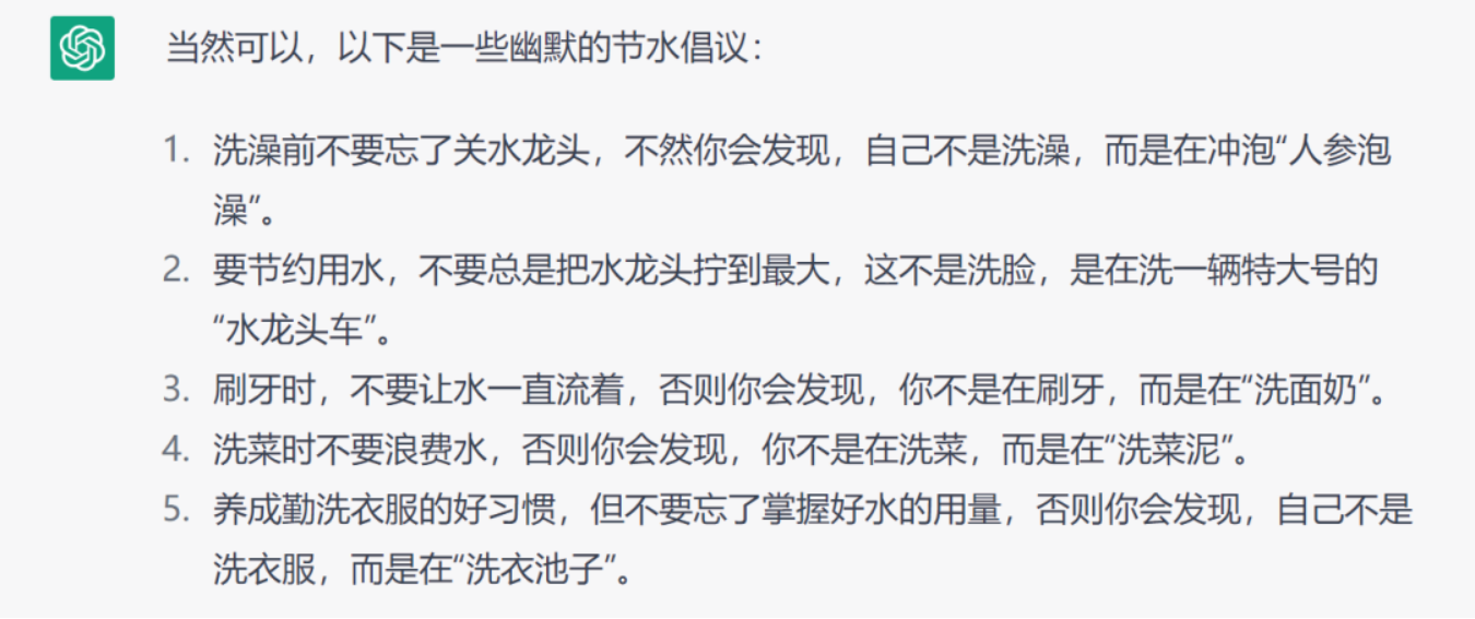 “水资源很珍贵,你能用幽默的方式倡议大家节水吗?”