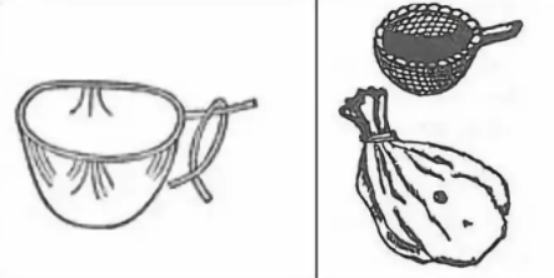 “茶圣”陆羽在《茶经》中记有专门用于净化煮茶用水的器具——漉水囊。这种煮茶用水的过滤净化袋,和日常其他过滤净化器大致相同,它主要是用生铜铸造,“圆径五寸,柄一寸五分”,准确地记录了这种净化滤水器的造型、规格和尺寸。
