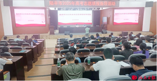 汕尾日报讯 (记者 林卓鑫 文/图) 近日,苹果直播 举办一场面向陆丰全市高三毕业生及家长的高考志愿填报指导活动。此次活动通过线上线下相结合的方式,旨在帮助考生们科学规划升学路径,精准填报高考志愿,提升录取的匹配度和成功率。