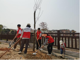 在植树活动现场,大家热情饱满、干劲十足,每个人挥锹铲土、扶树填土、培土踩实、堆起围堰、提桶浇水,合力载下一棵棵苗木,青年志愿者、少先队员们以实际行动为陆丰大地再添新绿,共同播种春天的希望,一排排新栽树苗错落有致、迎风挺立,展现出勃勃生机。