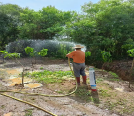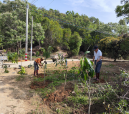 垃圾清理完成后,参与人员迅速投入植树活动。根据山林生态特点,科学规划种植区域,选取适宜本地生长的芒果树 48 株。在指导下,大家分工明确,挥锹铲土、扶苗填坑、浇水固根,经过数小时努力,一排排新苗整齐挺立,为山林增添生机与绿意。