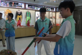 2025年7月8日下午,青年志愿者们先后与国家级非物质文化遗产传承人林炳光先生及时迁蛇艺代表性传承人张唐先生进行交流。两位传承人详细讲解了各自技艺的历史背景、文化内涵、表演形式及传承现状。在林炳光先生的带领下,实践队参观了甲子英歌舞展厅,认真观看了陈列的表演服饰、道具(如英歌槌、脸谱)、所获荣誉证书、奖杯及大量珍贵的演出照片。