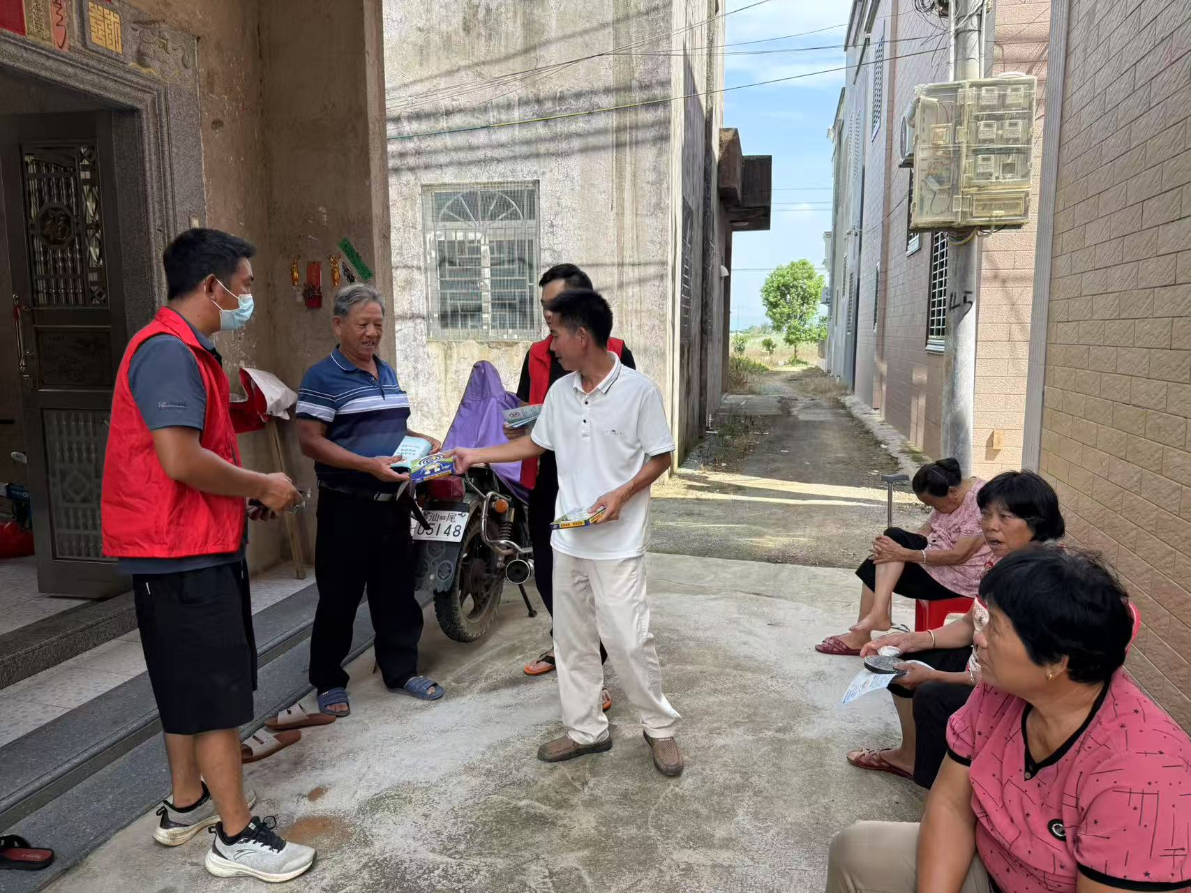 六、群防群控 依托“入户联心”机制,镇村干部、党员志愿者分组包片入户,面对面讲解翻盆倒罐、清理积水、个人防护知识,发放《基孔肯雅热防控指南》折页,面对面示范“翻盆倒罐、三分钟查积水”;微信群滚动推送温馨提示,做到“户户有承诺、人人会操作”。群众自觉把阳台花瓶倒扣、把废旧轮胎归拢,形成“家家参与、人人受益”的生动局面。