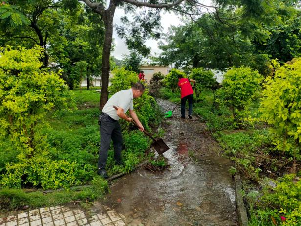 当日,镇村干部、网格员、文明实践志愿者等冒雨开展行动,对村内的小公园、草坪、群众健身广场的垃圾、果皮、纸屑和杂草、枯枝等进行清理,随后进行全面清洁和消毒,预防细菌滋生。同时,行动人员还对村内河流、沟渠的塑料袋、枯枝、水生植物残体等漂浮物进行打捞,确保水体洁净。