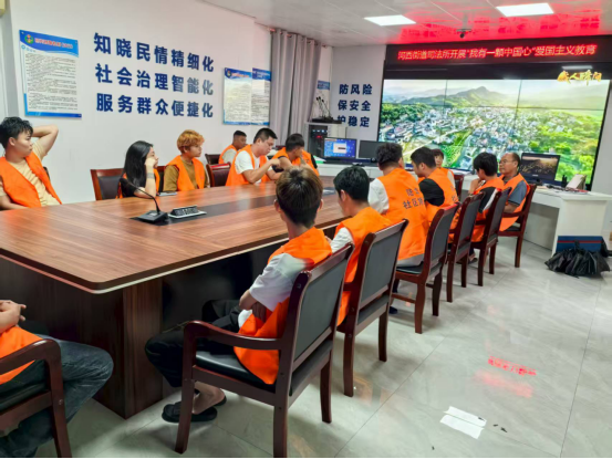 在活动进程中,特别融入爱国主义教育,通过讲述祖国发展历程、展示辉煌成就,播放爱国主义相关视频,激发矫正对象爱国情怀,引导他们将爱国精神转化为积极改造的动力,早日回归社会,成为合格守法公民。同时,工作人员采用多种形式开展普法教育。一方面,向社区矫正对象发放包含相关法律法规知识的宣传单,让他们能够随时翻阅学习;另一方面,播放禁毒科普短视频以及扫黑除恶等法律科普短视频,以直观、生动的形式增强社区矫正人员对禁毒、反邪、扫黑等法律知识的理解和认识。此外,再次重申了社区矫正期间的日常行为规范,要求矫正对象严格遵守报告制度、外出审批制度等各项管理规定。