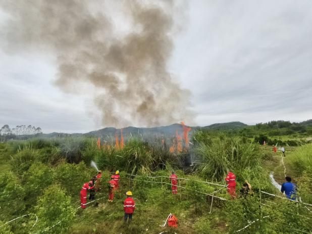 演练模拟八万村护林员巡查发现八万村委石排山一处配电设施周边区域发生火情,有损坏配电设施的风险,向镇分管领导和有关部门报告。镇分管领导陈木升接到火情报告后,第一时间组织镇应急办、综合行政执法队、综合事务中心、消防队、森林消防半专业队伍迅速携带装备前往火场处置火情。镇村应急队伍40余人,前往开展森林防灭火应急突击演练。