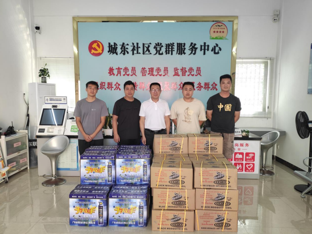 捐赠物资到位后,城东社区依托“入户联心”迅速组织社区两委干部、网格员、党员志愿者向社区残疾人、低保户、五保户、独居老人等群体发放杀虫气雾剂、蚊香和宣传资料。