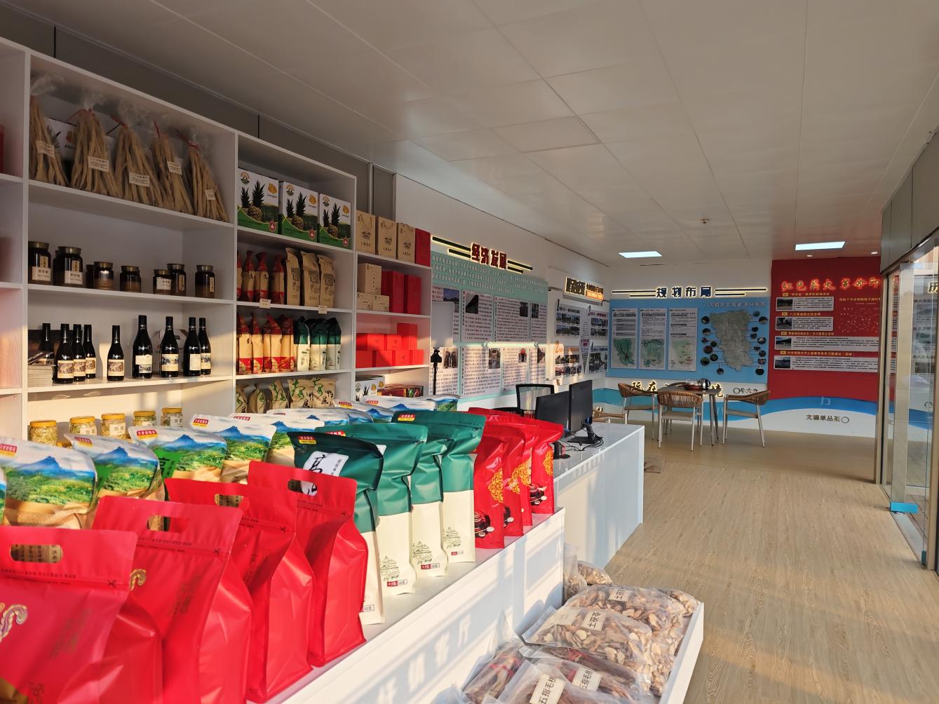 八万镇以美丽圩镇“七个一”建设为核心抓手,打破“单一展示”思维定式,将美丽圩镇客厅打造为多业态聚合、多功能集成的镇域核心枢纽,串联周边优质公共服务资源,精心打造“便民生活圈”。圩镇客厅整合电商驿站、农产品展示、休闲娱乐三大核心业态,“一站式”满足群众多元需求:休闲餐吧已建成运营,提供轻食茶饮、本土特色小吃等服务,成为群众日常小聚、休闲放松的优选场所;农产品展销区集中陈列老水鸡、文德单丛茶、牛大力等本土特色产品,打造极具辨识度的本土品牌窗口;电商驿站嵌入客厅核心区域,整合直播带货、线上销售等服务,全面打通产品上行销售渠道。此外,以圩镇客厅为核心,串联八万文体广场、草地公园、休闲步道和综合文化站,构建群众休闲集聚区;整合综合市场、便民充电站、农商银行、供电所等公共资源,打造综合服务平台。如今,无论是老人晨起健身、青年创业增收、家庭周末小聚,还是群众往来办事,圩镇客厅均以多元功能满足不同群体需求,真正成为群众“愿来、爱来、常来”的生活聚集地与情感共鸣地。