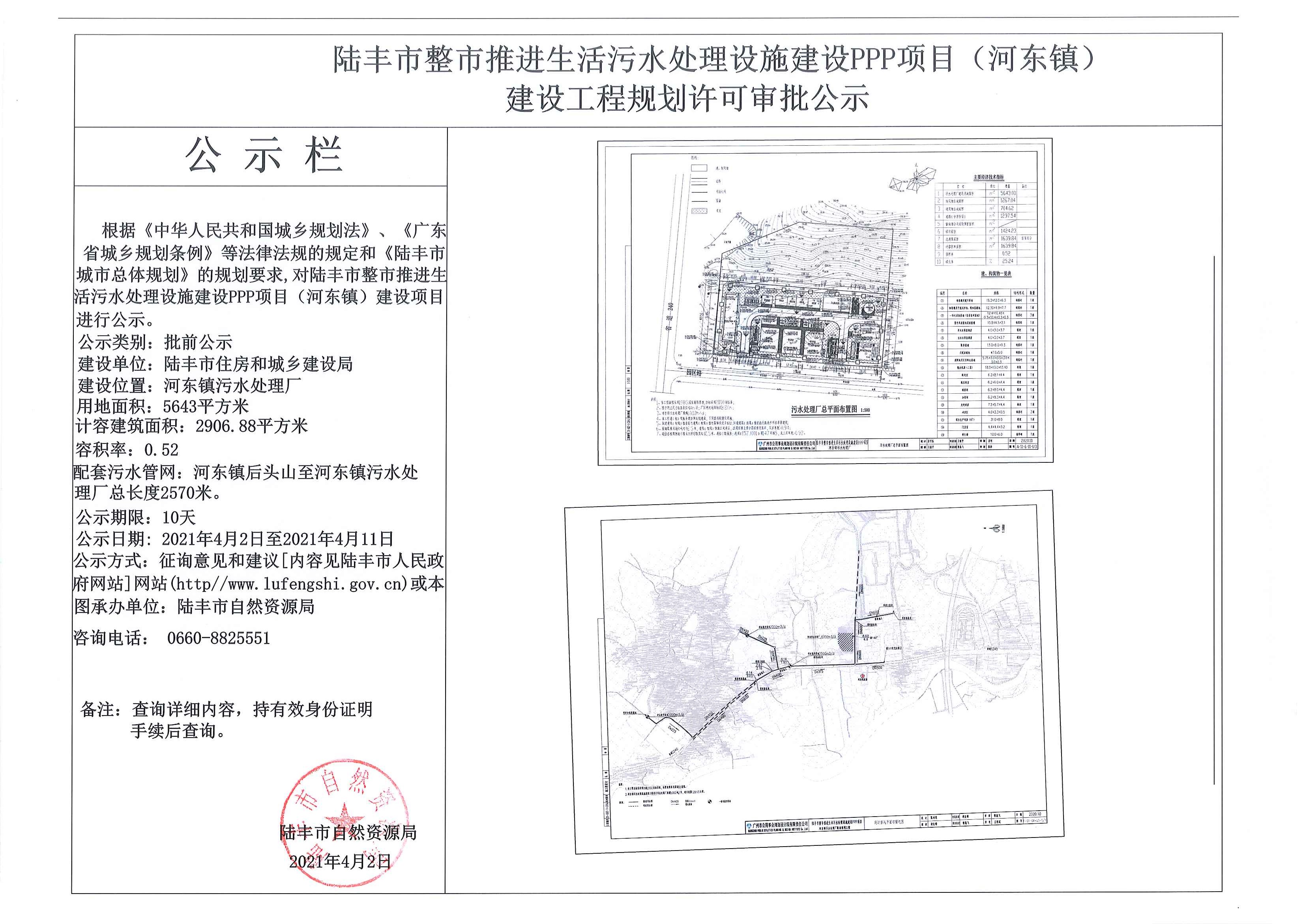 苹果直播 整市推进生活污水处理设施建设PPP项目(河东镇)建设工作规划许可审批公示