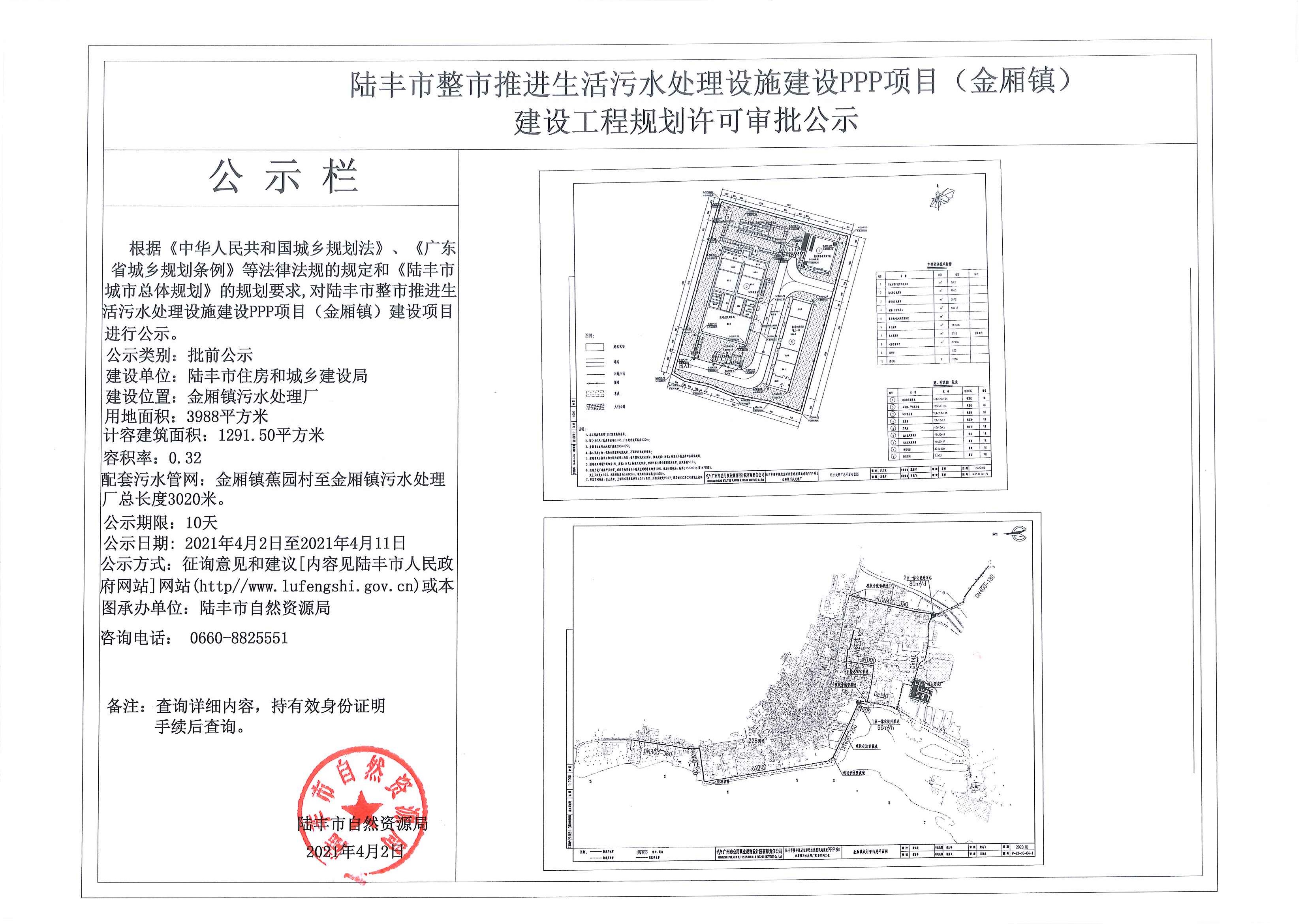 苹果直播 整市推进生活污水处理设施建设PPP项目(金厢镇)建设工作规划许可审批公示
