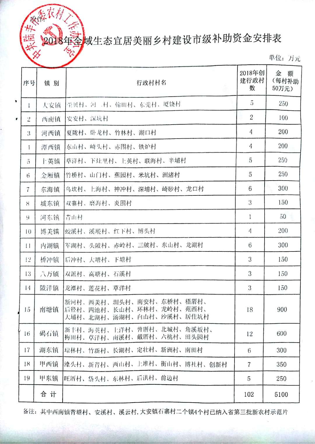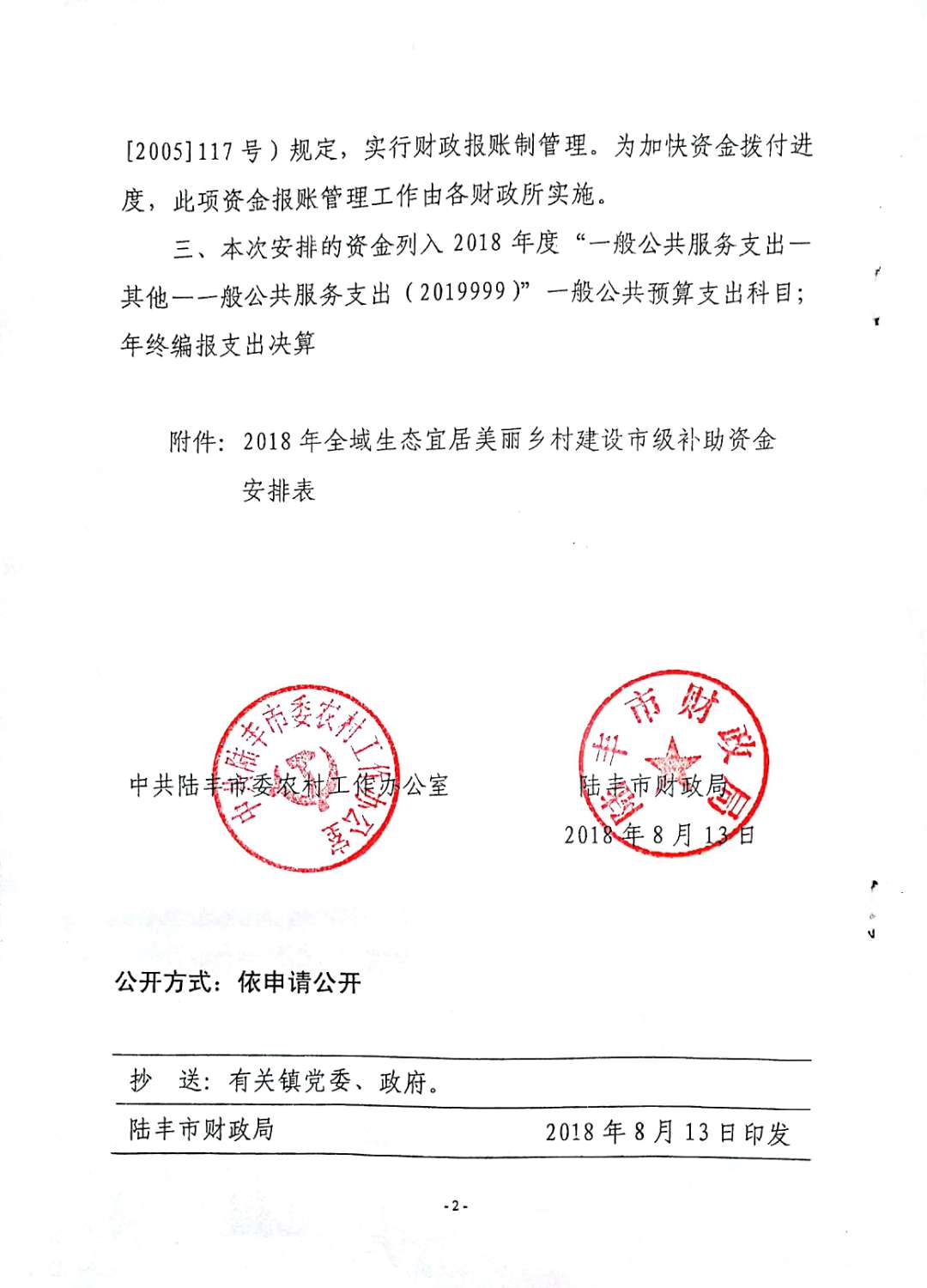 关于下达2018年全域生态宜居美丽乡村建设市级补助资金的通知
