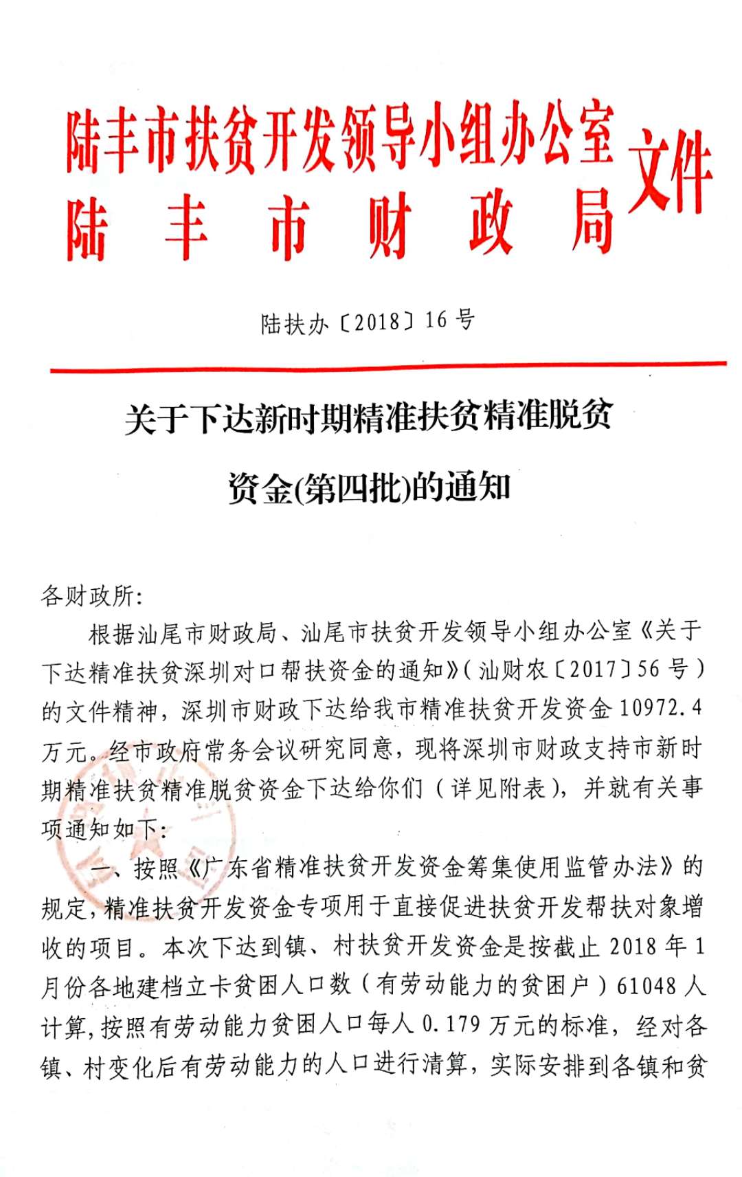 关于下达新时期精准扶贫精准脱贫资金(第四批)的通知