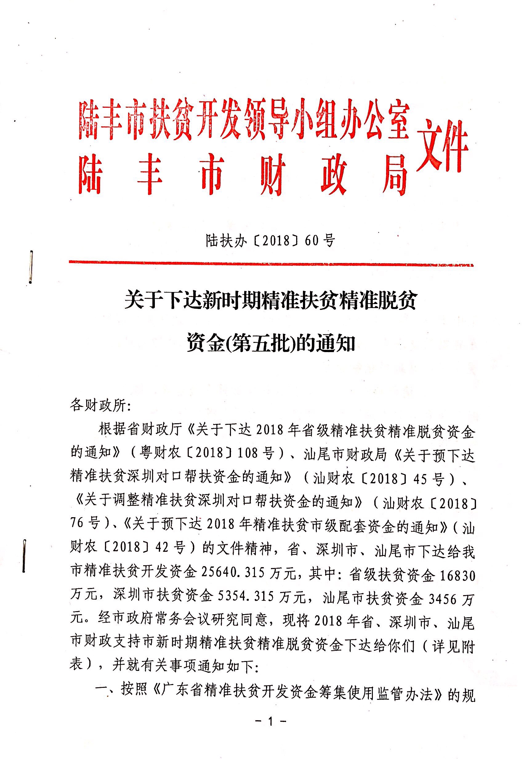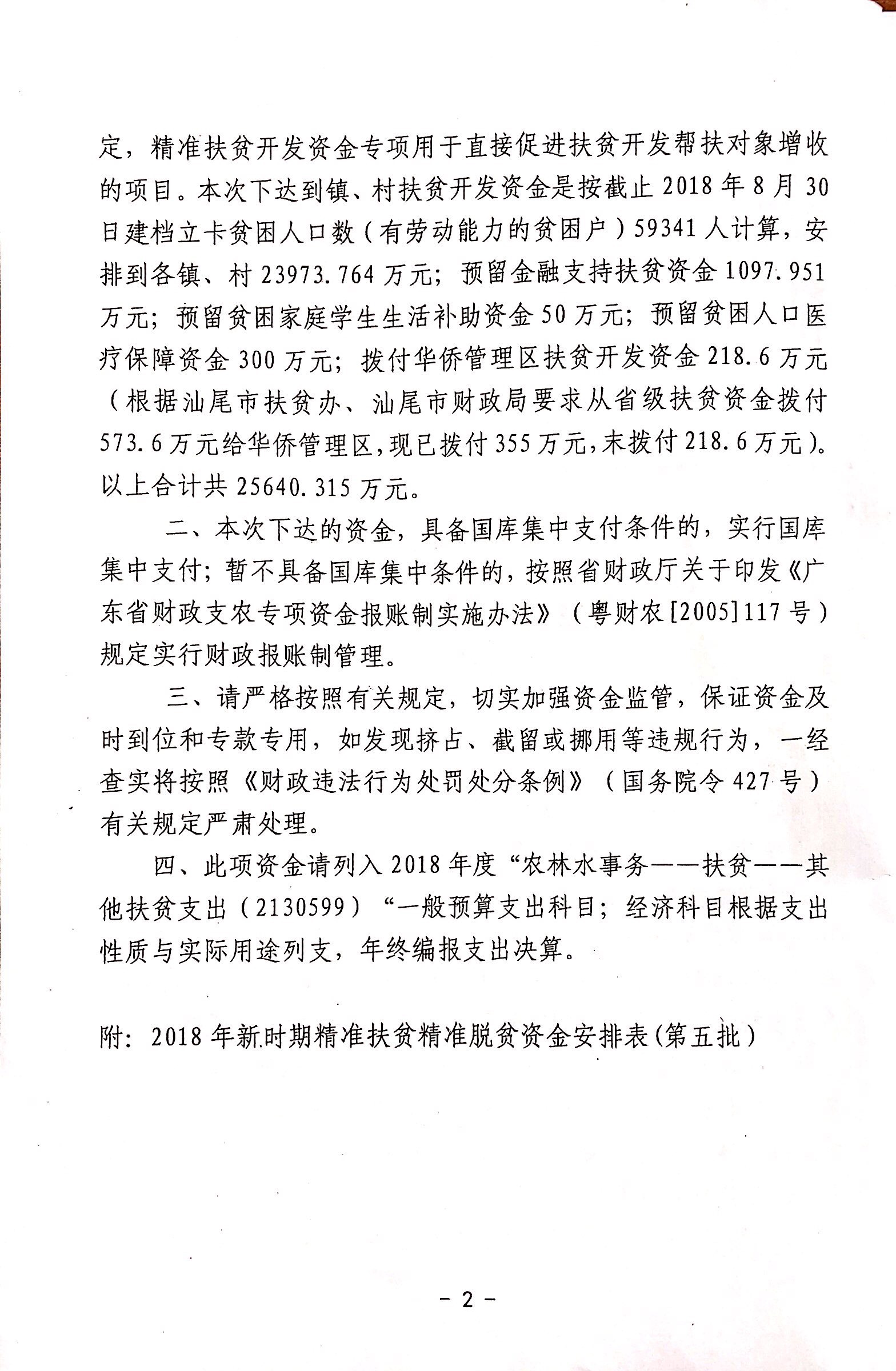 关于下达新时期精准扶贫精准脱贫资金(第五批)的通知
