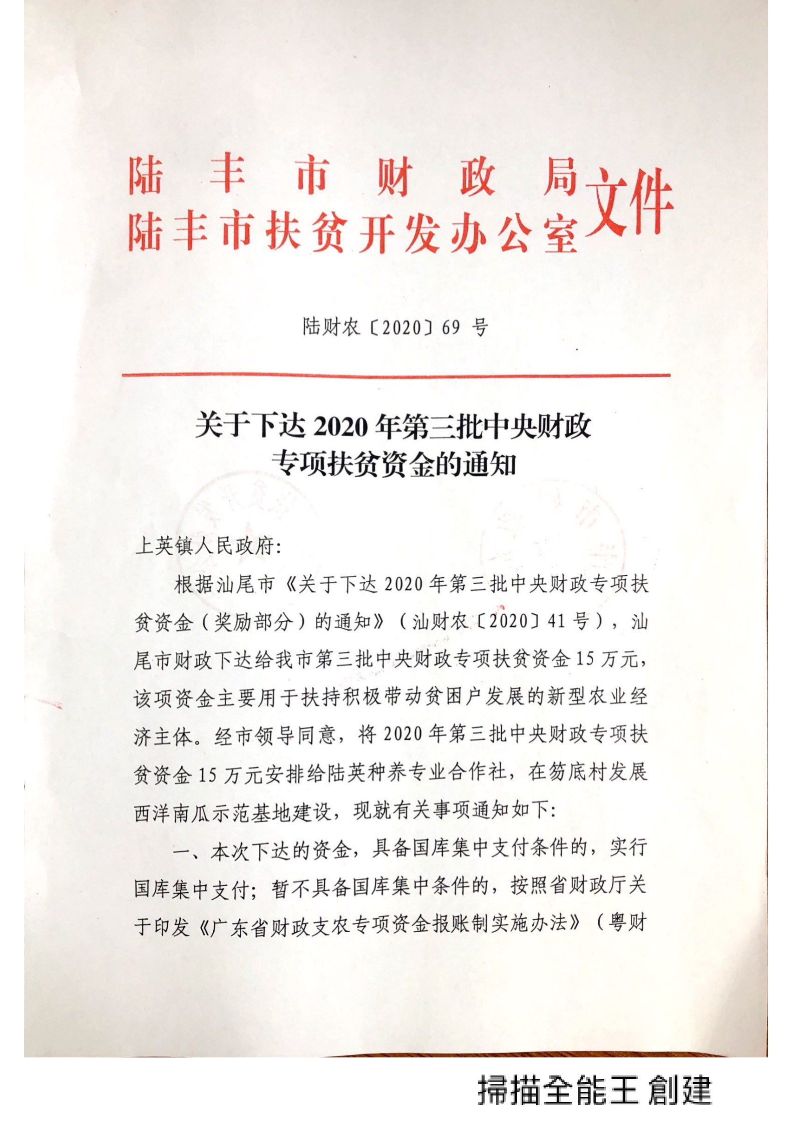 关于下达2020年第三批中央财政专项扶贫资金的通知