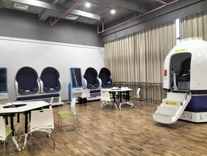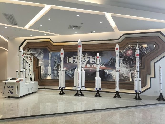 依据从上至下的顺序,分别是:大型学术报告厅,VR室(VR豪华座舱和登月体验舱),航天模型展区(带火箭发射模拟功能)和先进的智慧书法教室。其中,大型学术报告厅,能容纳450人,配有导播室、全方位LED屏及表演专用钢琴,可承办各种大型文艺汇演、学术报告等活动,展示陆丰风采。