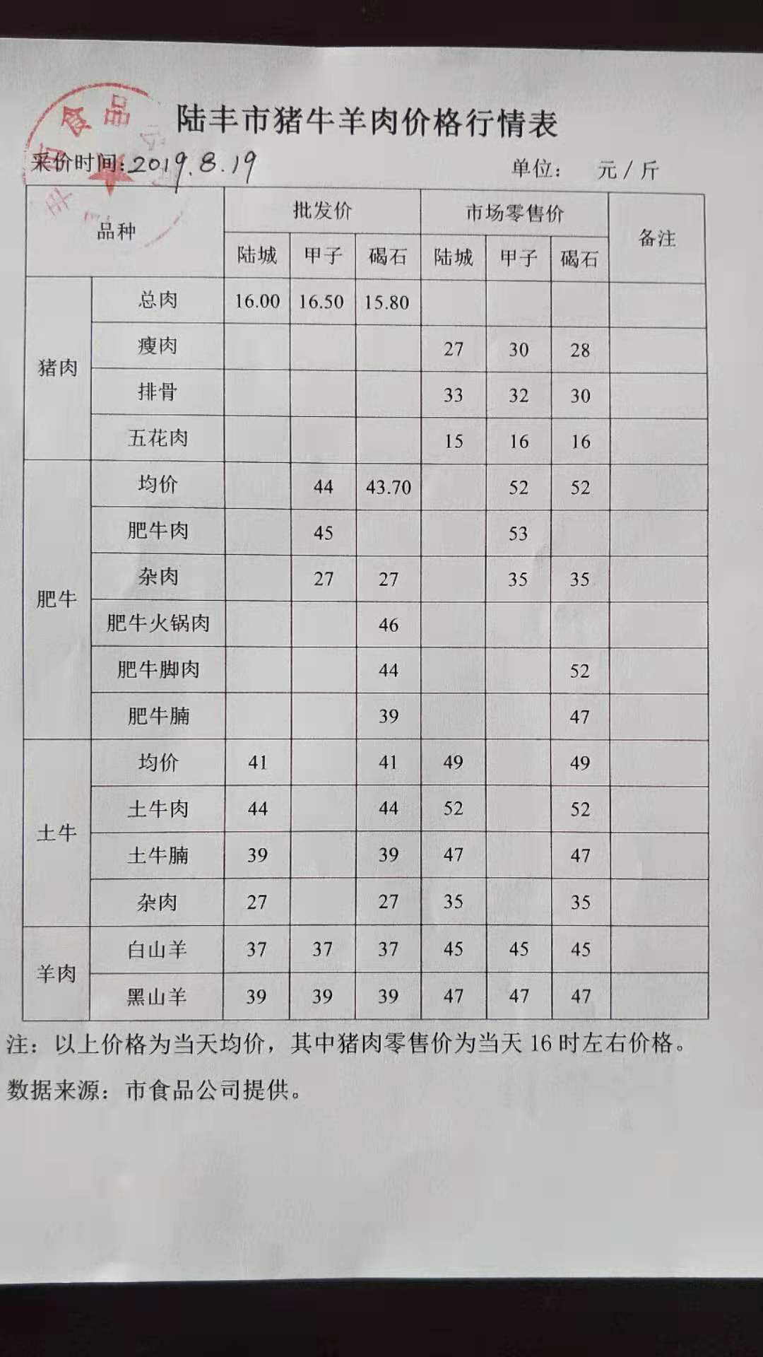 苹果直播 猪牛羊肉价格行情表(2019年8月19日)