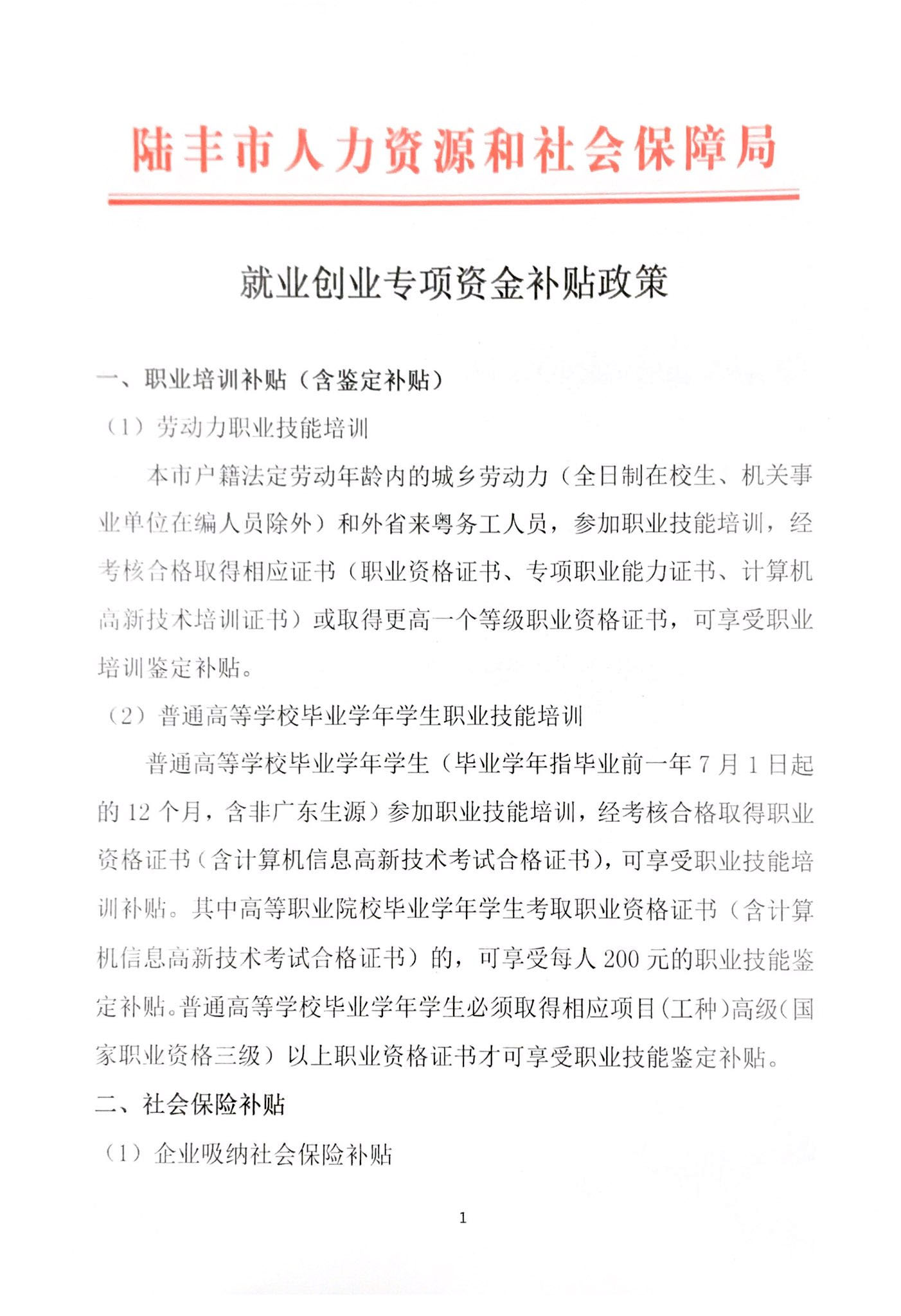 就业创业专项资金补贴政策