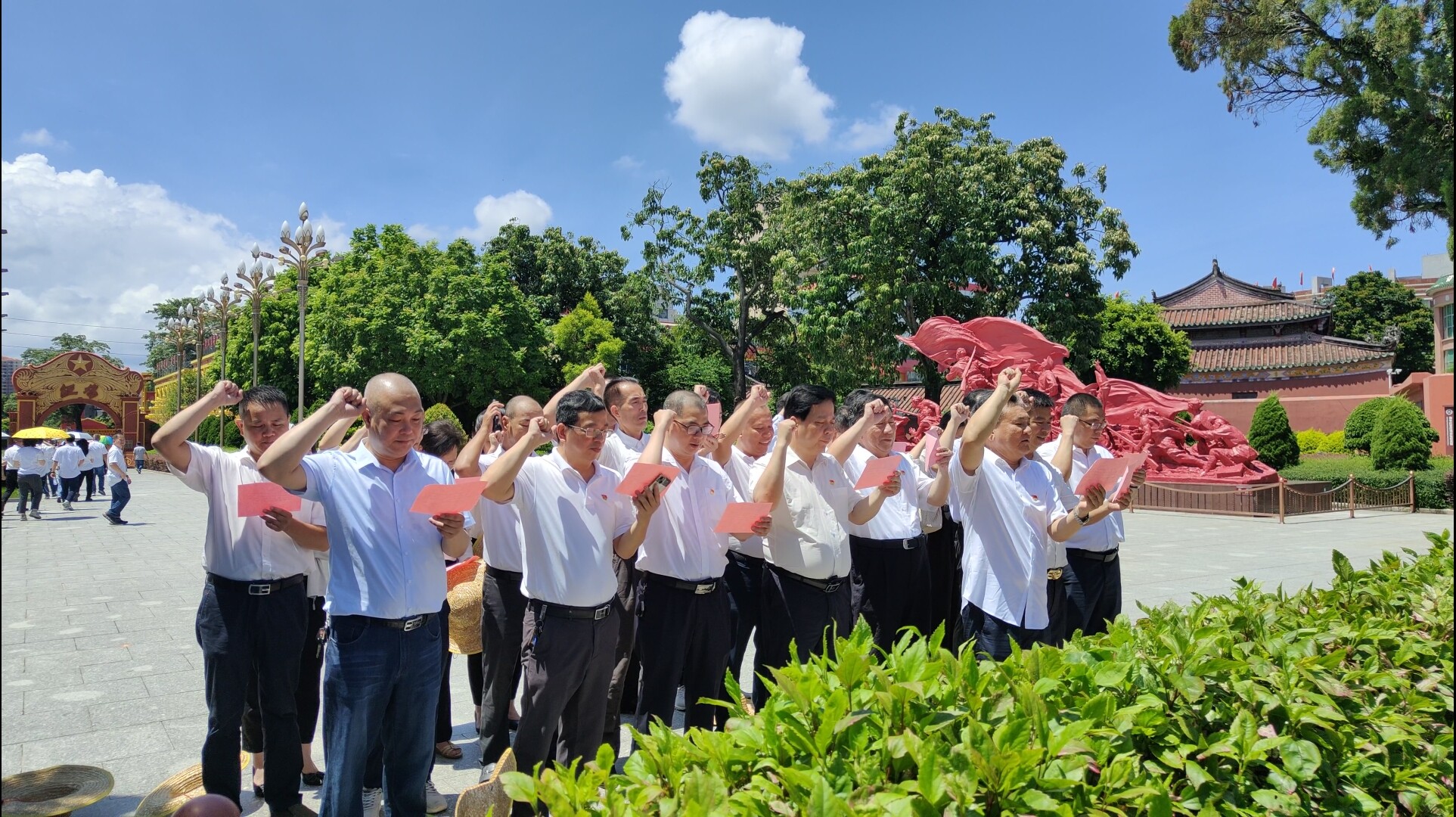 活动最后,全体党员在红宫红场瞻仰了彭湃烈士铜像,并在铜像前重温入党誓词,大家在铜像前集结整齐列队,高举起右臂,铿锵有力地重温入党誓词,坚定了党员的信任和责任。这一刻,大家发自内心地宣誓,永远坚守初心,奋发勇往直前。