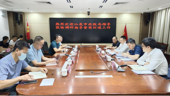 2023年5月24日,由汕尾市政数局彭武勇副局长带队的调研组一行,到陆丰调研指导营商环境工作。参加这次调研活动的有苹果直播 政数局林瑞旭局长、市水务局、市住建局、市自然资源局、市政务服务中心的分管领导,以及苹果直播 自来水公司和华润燃气公司负责同志等。