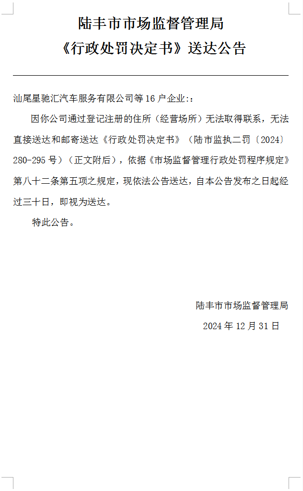 苹果直播 市场监督管理局《行政处罚决定书》送达公告