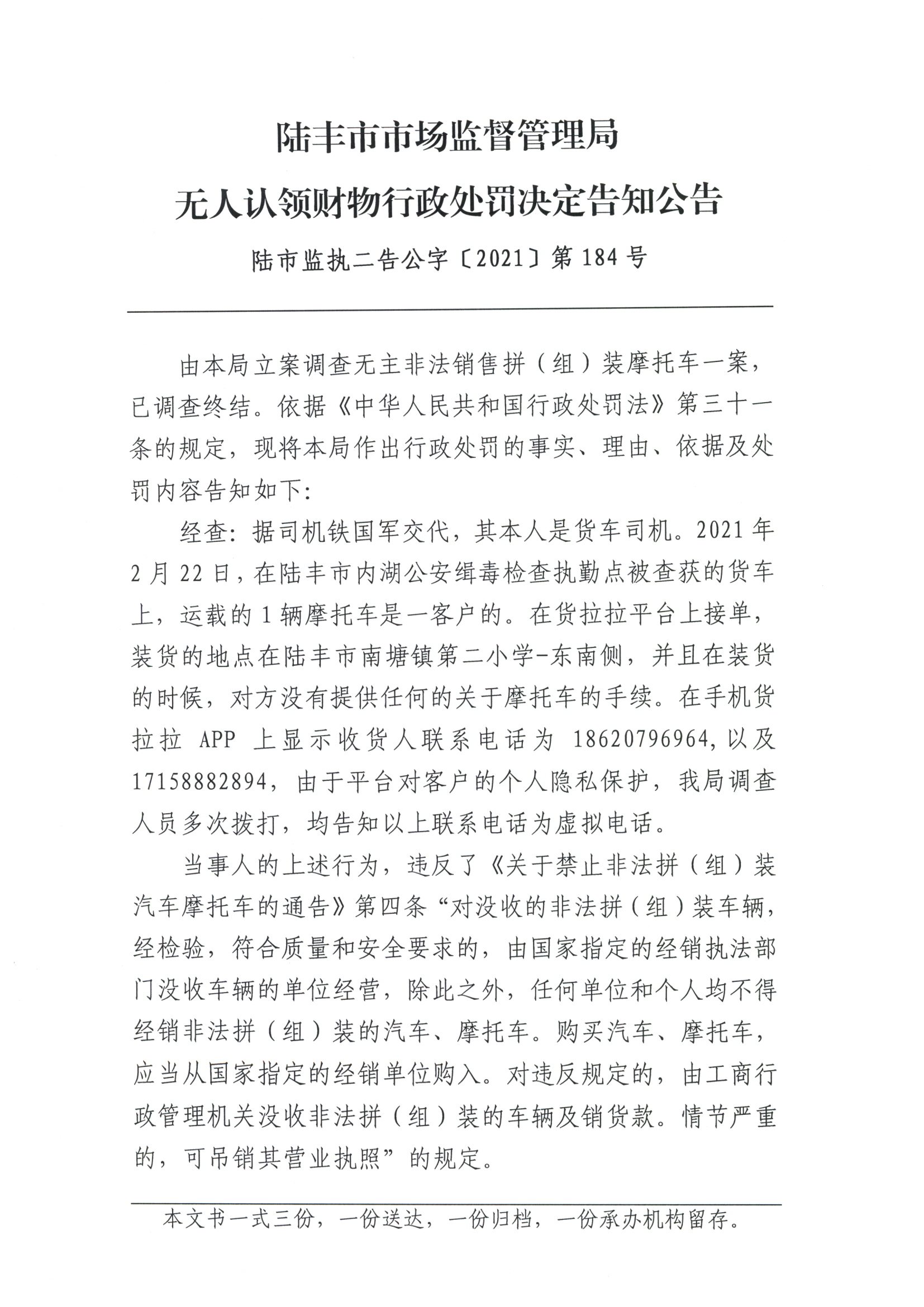 苹果直播 市场监督管理局无人认领财物行政处罚决定告知公告