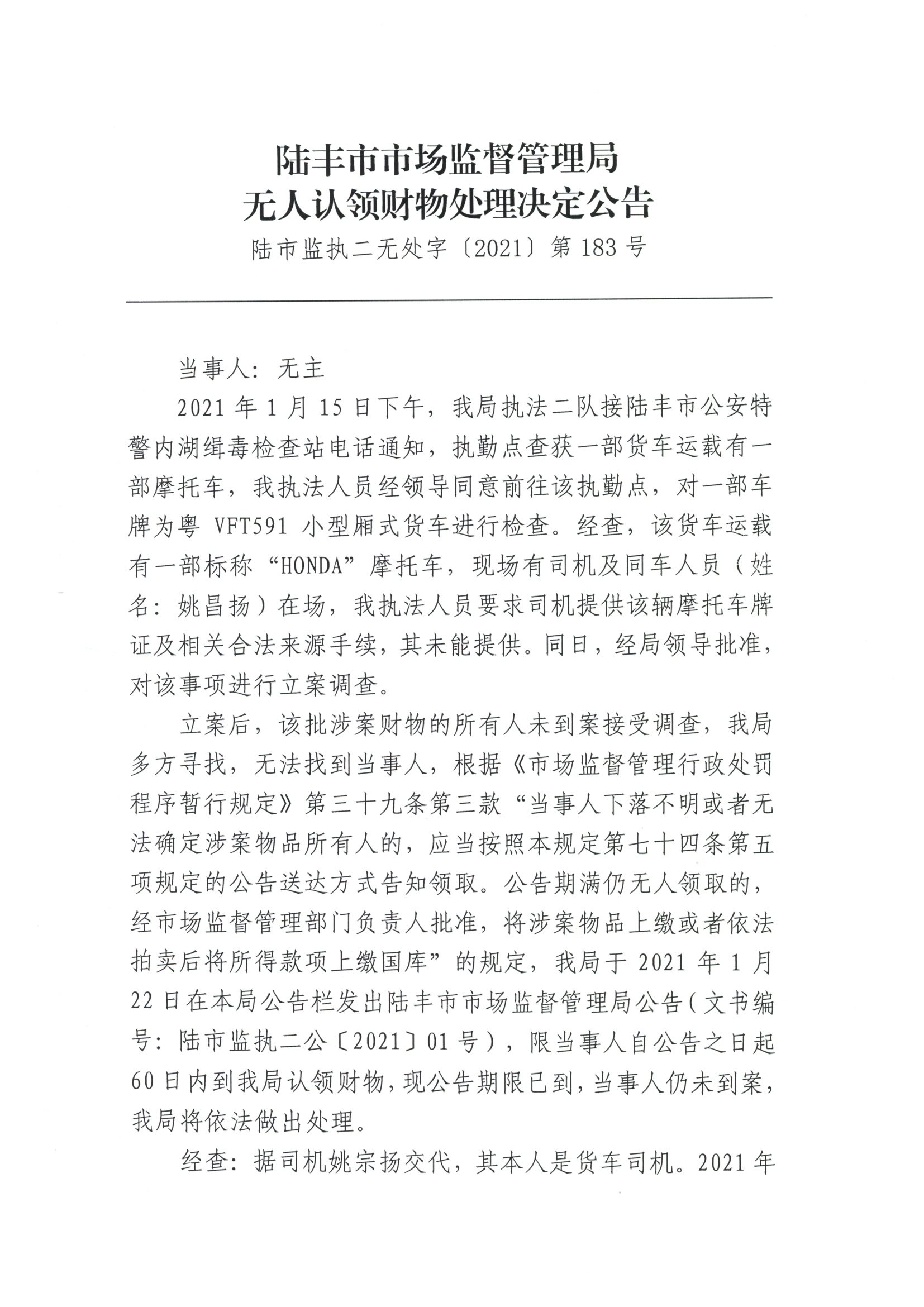 苹果直播 市场监督管理局无人认领财物处理决定公告