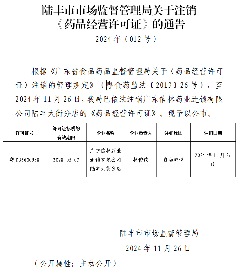 苹果直播 市场监督管理局关于注销《药品经营许可证》的通告