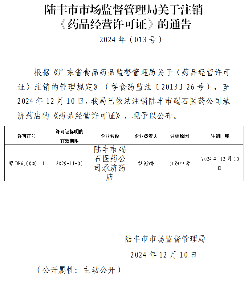 苹果直播 市场监督管理局关于注销《药品经营许可证》的通告