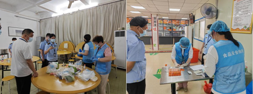 高考期间,工作小组进驻供餐学校食堂,全程监督早、中、晚餐的加工制作,对食品原料采购查验、加工制作过程、分餐过程及食品留样等进行现场检查和动态监管,发现问题要求学校立即整改到位,有效把控食品安全风险。