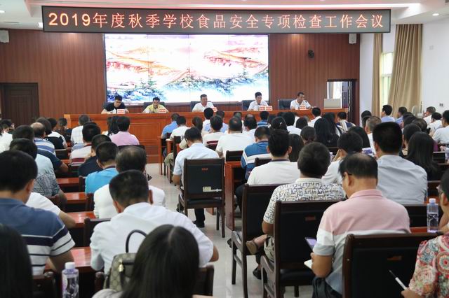 市场监督管理局、市教育局、市人社局联合召开2019年度秋季学校食品安全专项检查工作会议。市市场监管局、市教育局、市人社局负责同志,食品安全监管相关业务股室、各市场监管所、各中心学校、市直各校(含技工学校,幼儿园)负责人共150余人参加会议。