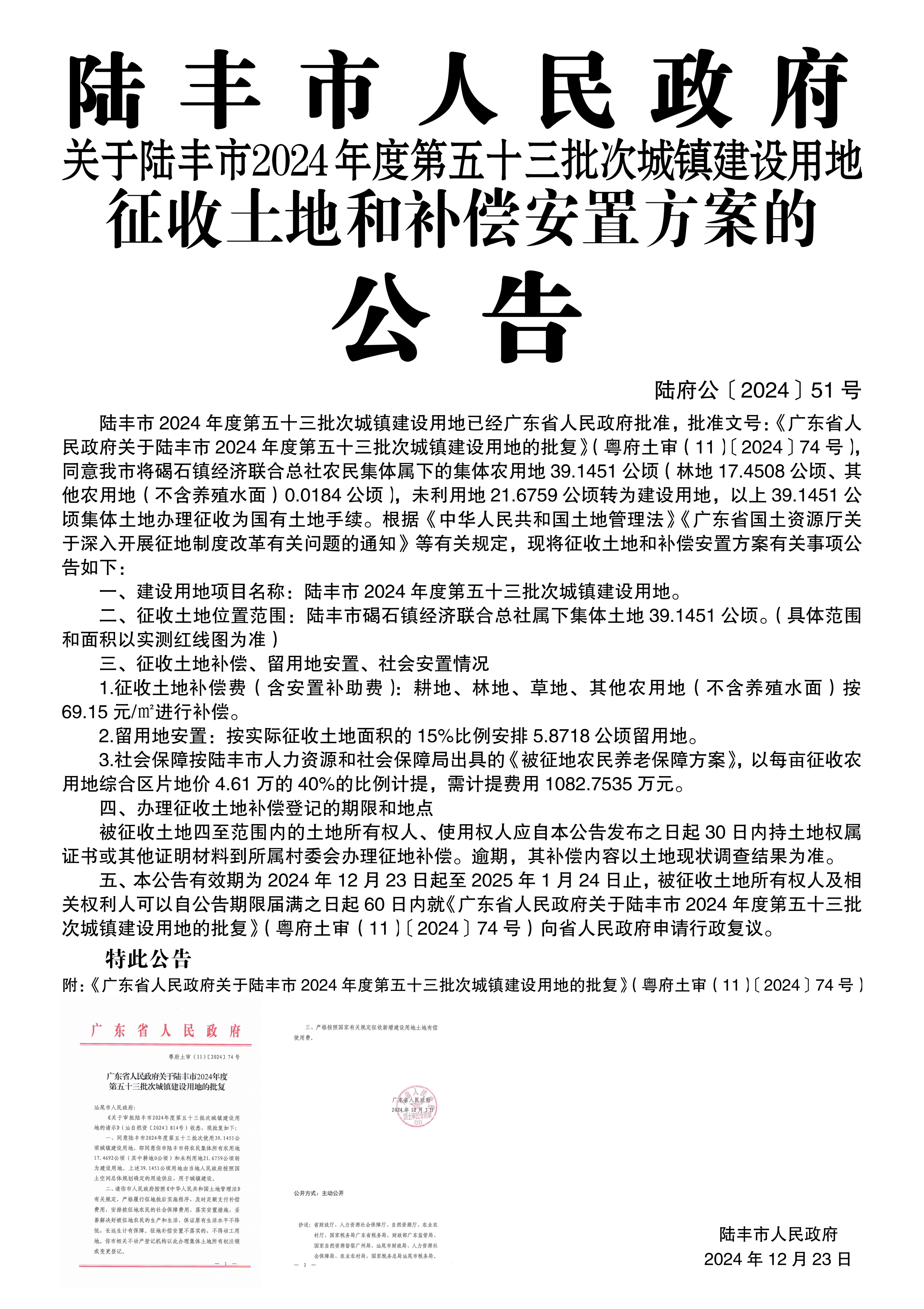 广东省人民政府关于苹果直播 2024年度第五十三批次城镇建设用地的批复(粤府土审(11)〔2024〕74号)