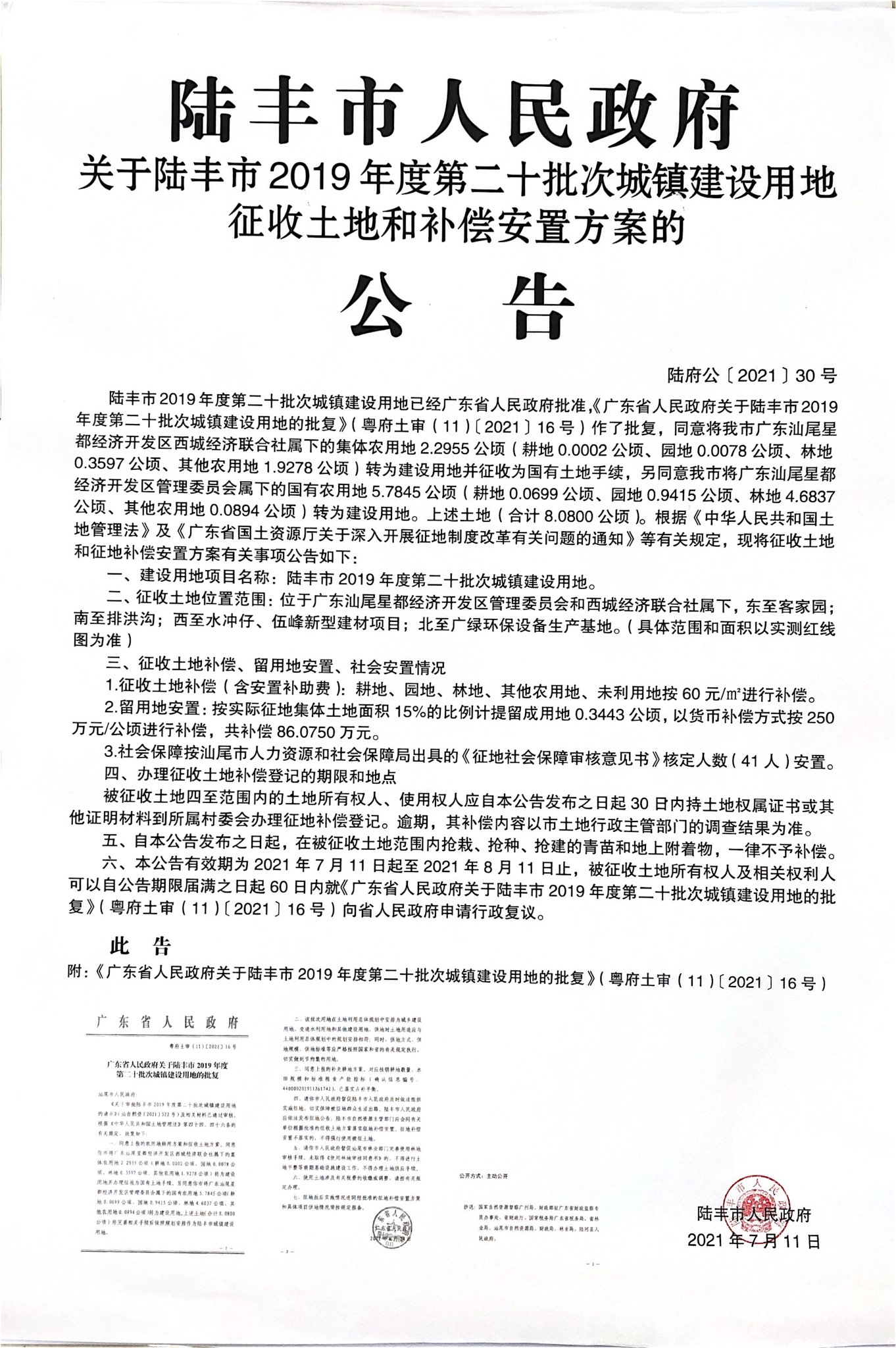 广东省人民政府关于苹果直播 2019 年度第二十批次城镇建设用地的批复(粤府土审(11)〔2021〕16号)