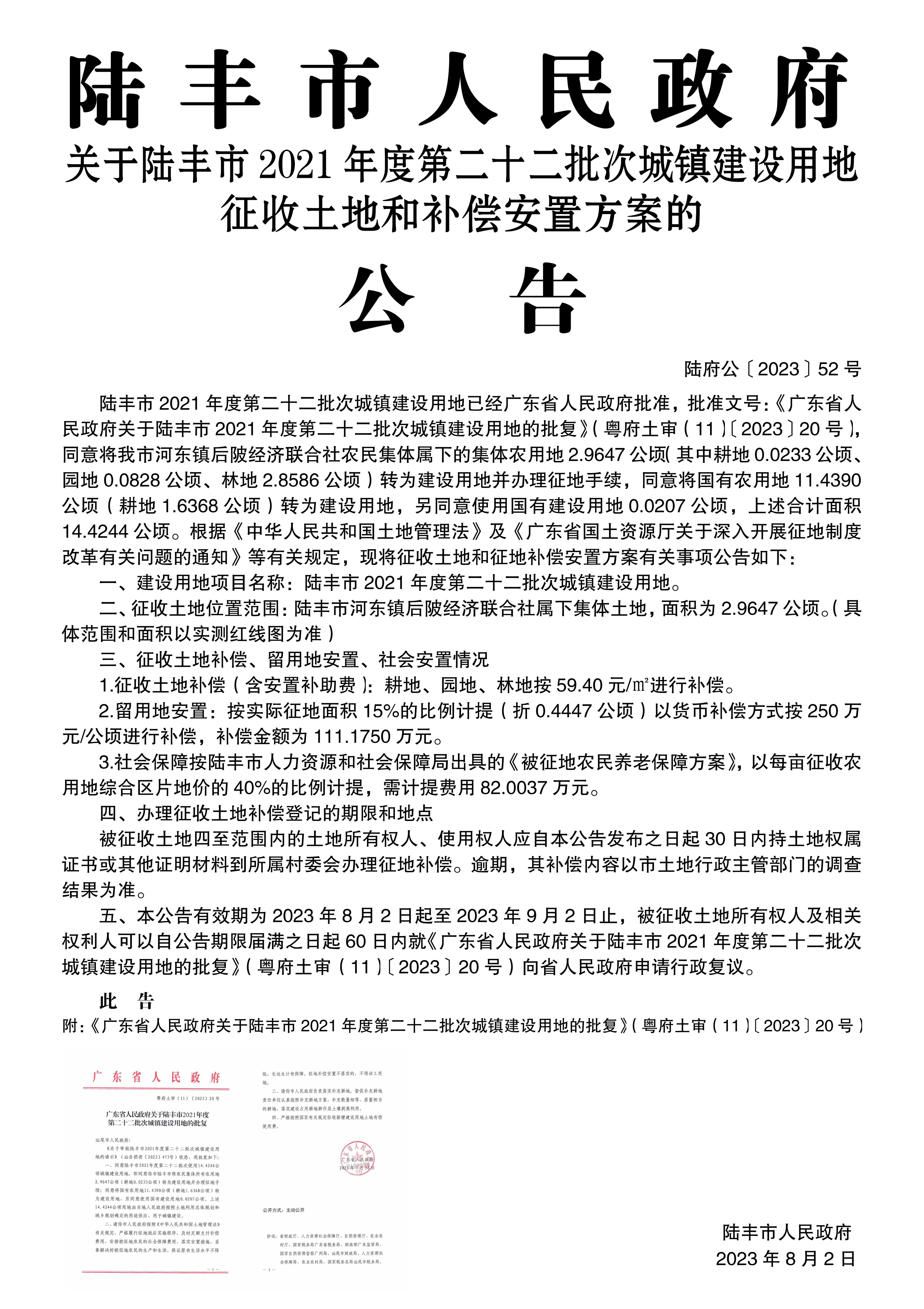 广东省人民政府关于苹果直播 2021年度第二十二批次城镇建设用地的批复(粤府土审(11)〔2023〕20号)
