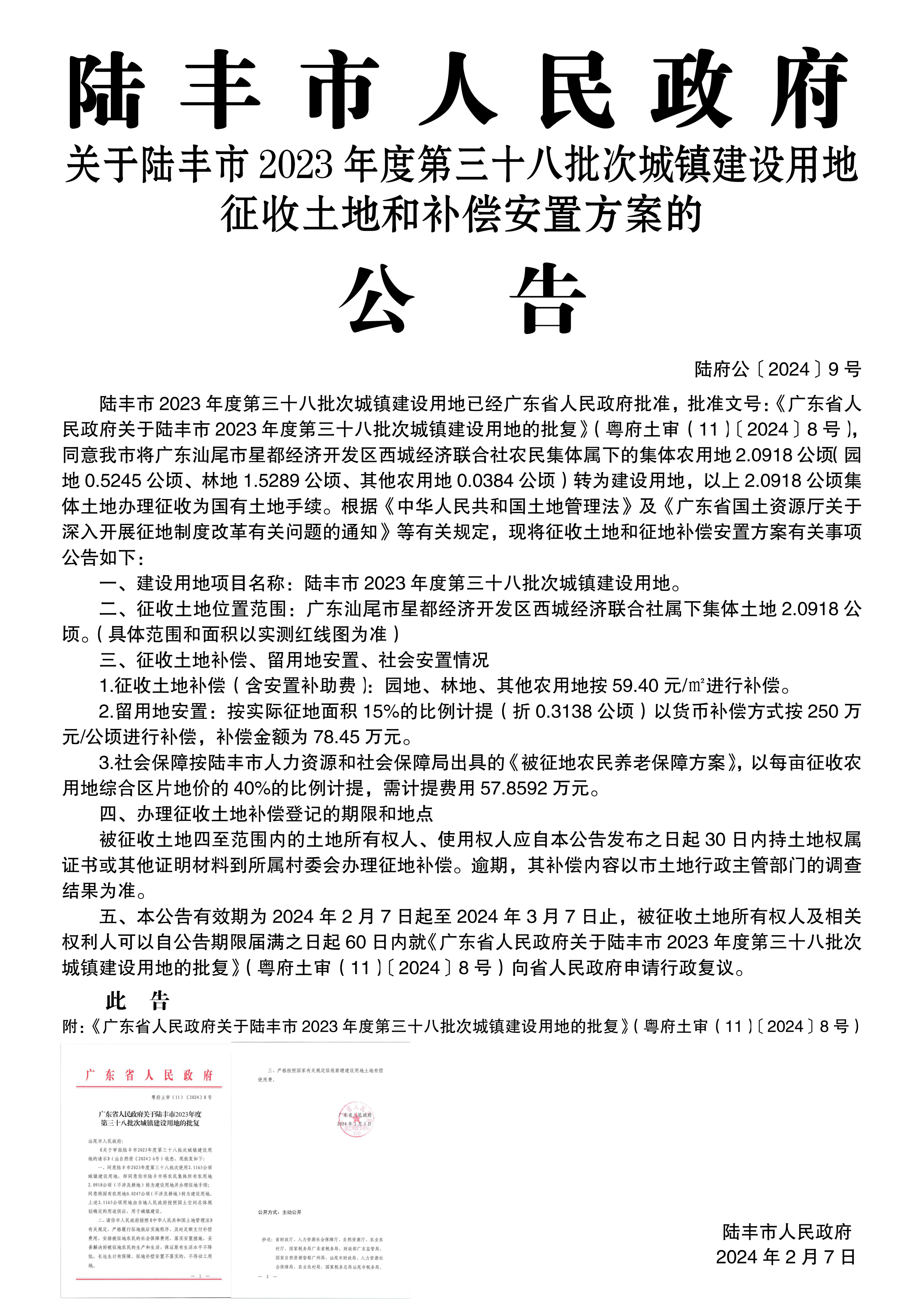 广东省人民政府关于苹果直播 2023年度第三十八批次城镇建设用地的批复(粤府土审(11)〔2024〕8号)