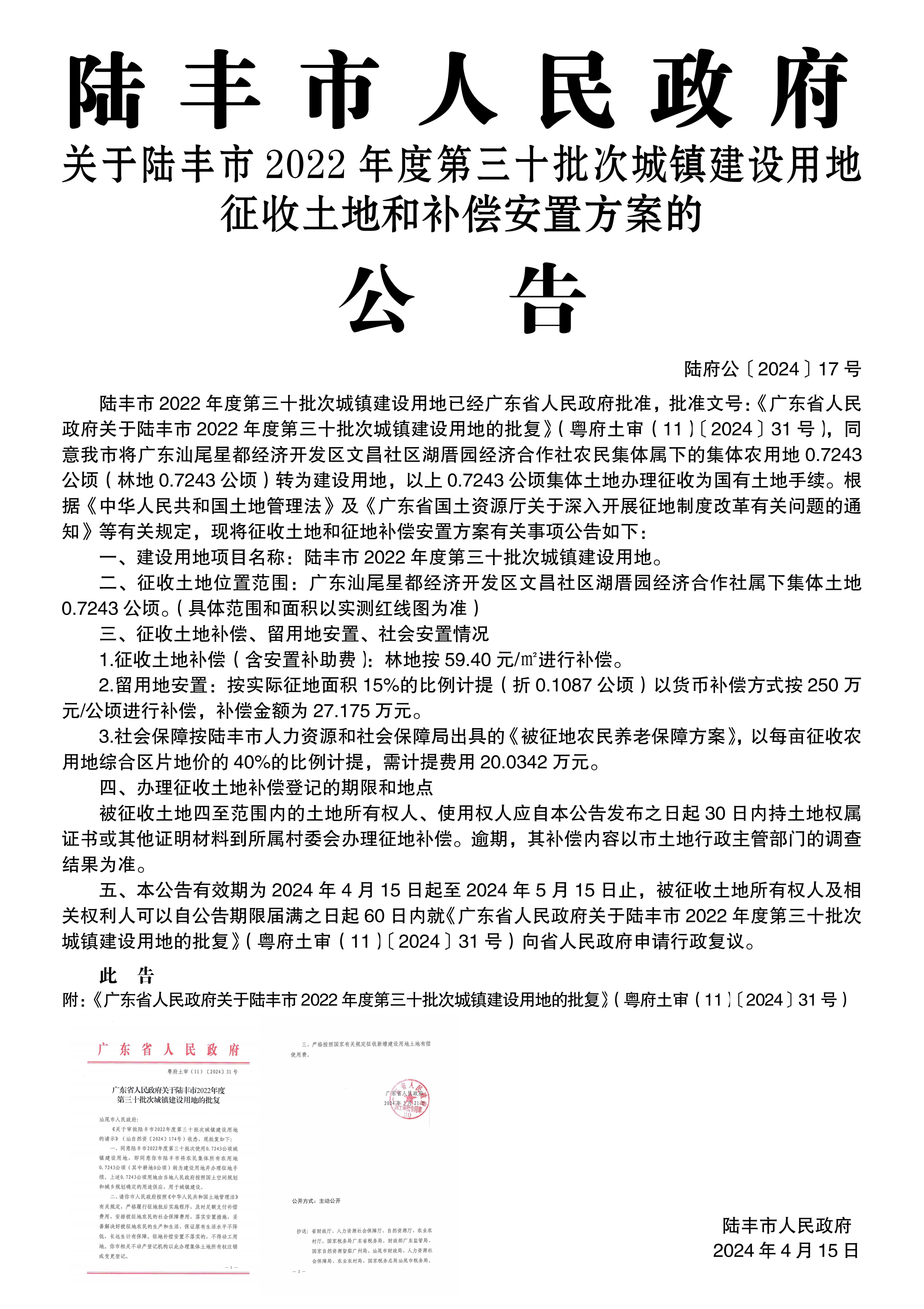 广东省人民政府关于苹果直播 2022年度第三十批次城镇建设用地的批复(粤府土审(11)〔2024〕31号)