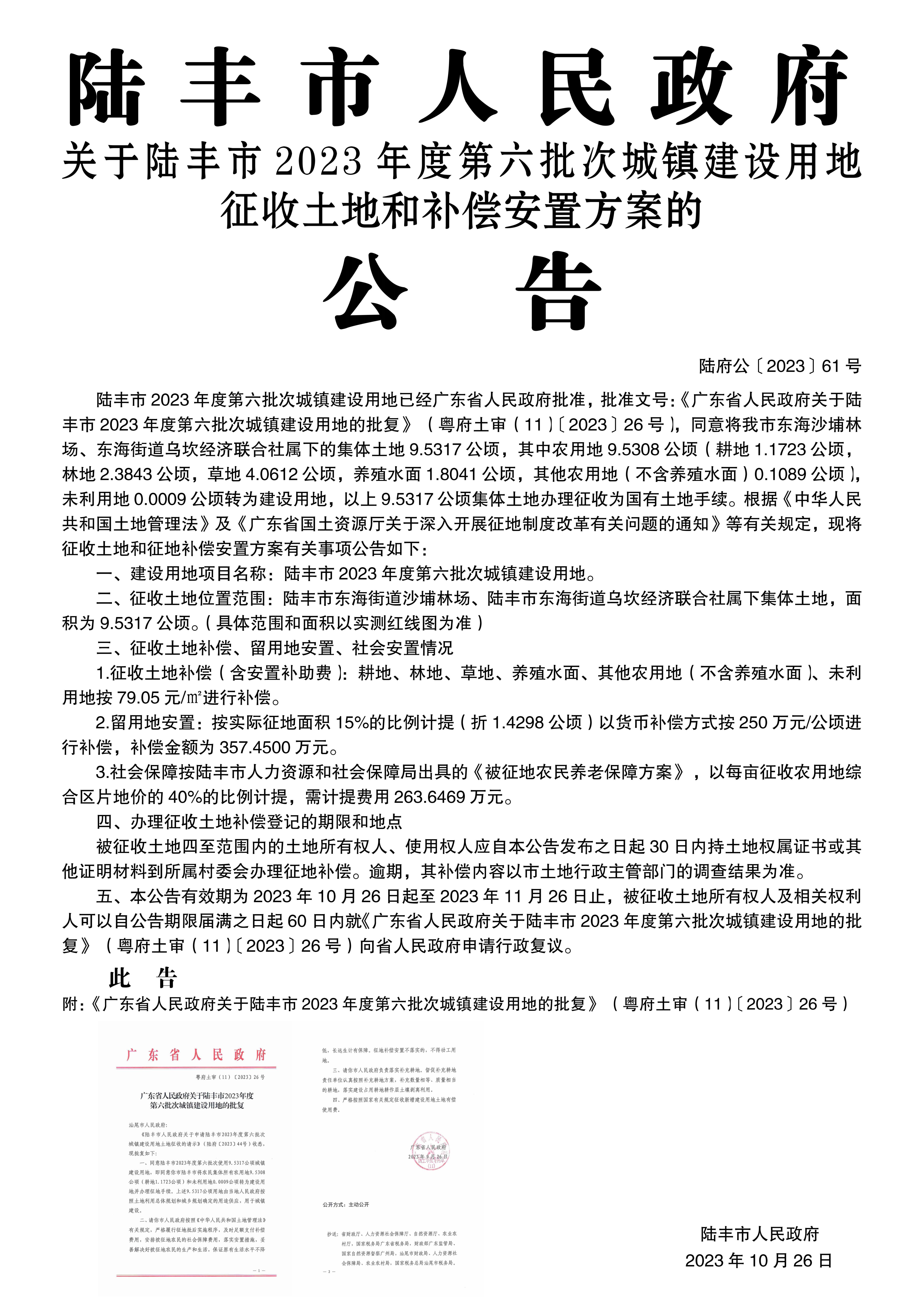 广东省人民政府关于苹果直播 2023年度第六批次城镇建设用地的批复(粤府土审(11)〔2023〕26号)
